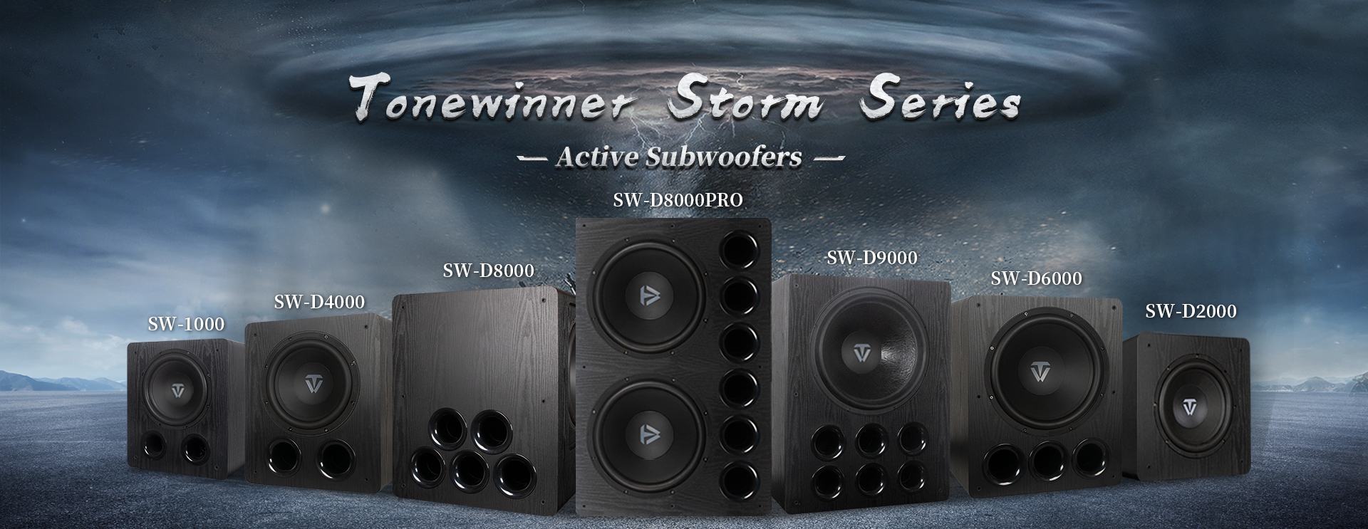 The Chinese brand Tonewinner meets diverse market needs with its Storm series, offering seven models from 10 to 18 inches and power ranging from 200W to 1500W. These suit various settings, from living rooms to home theaters.