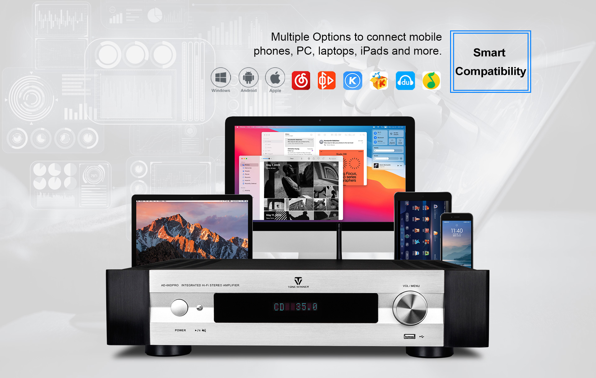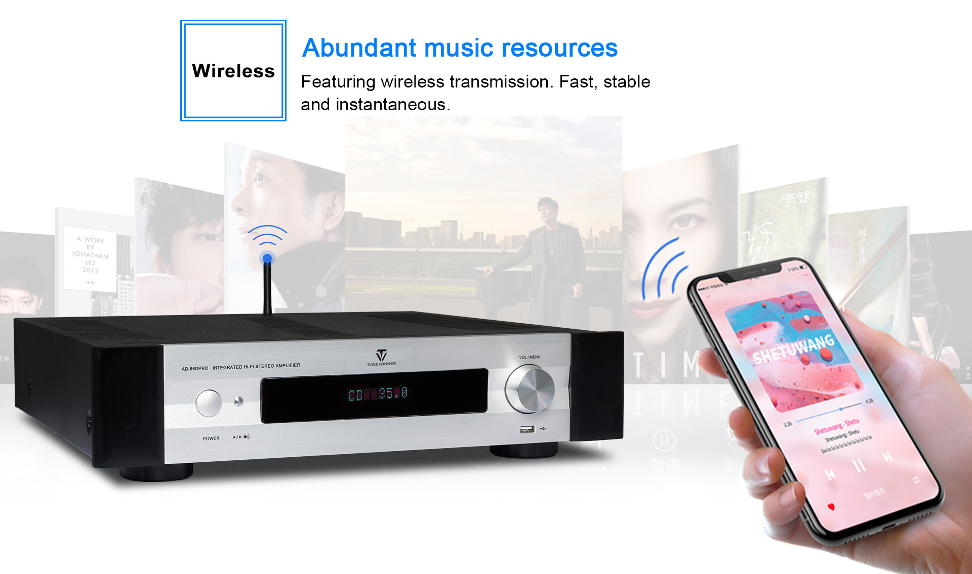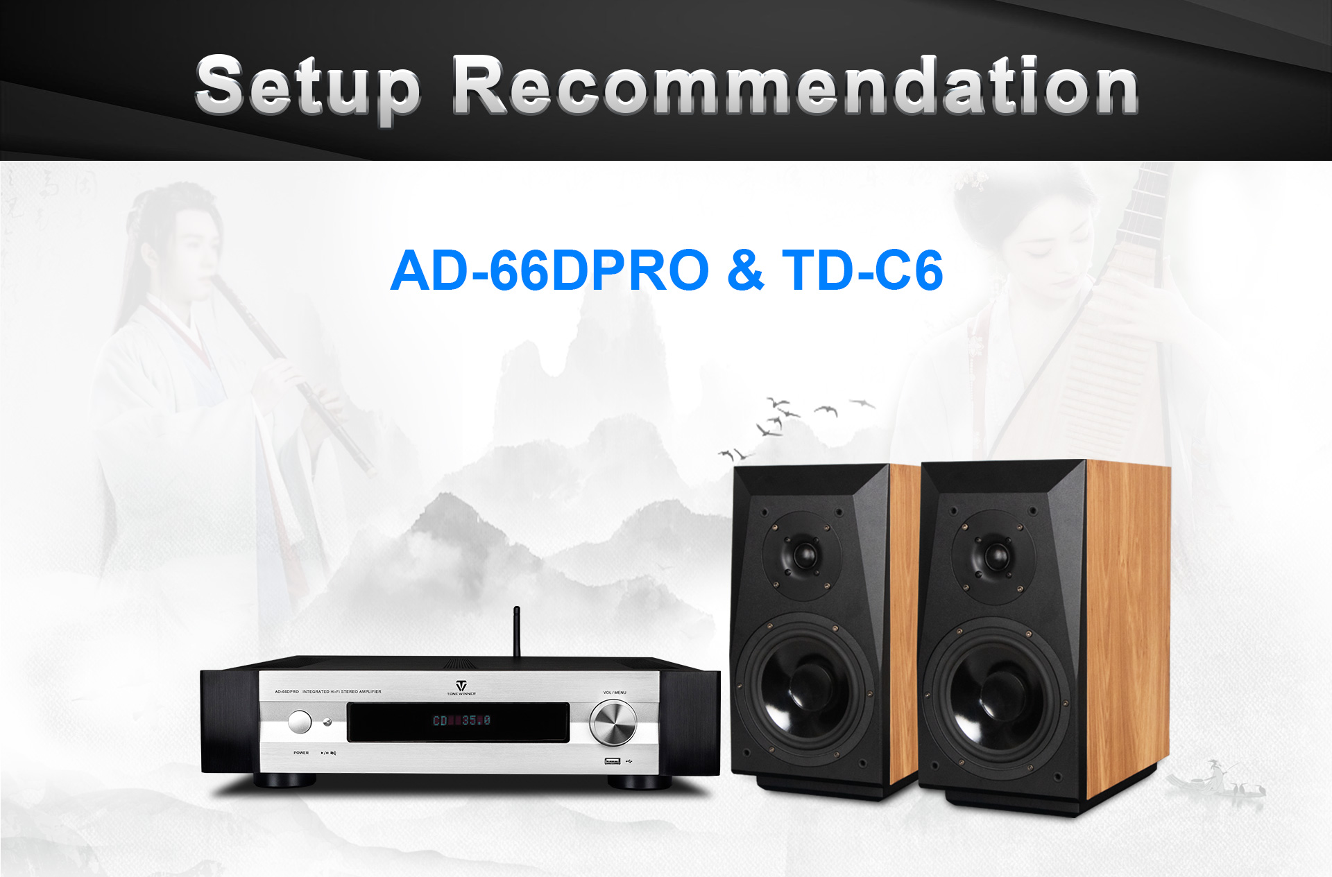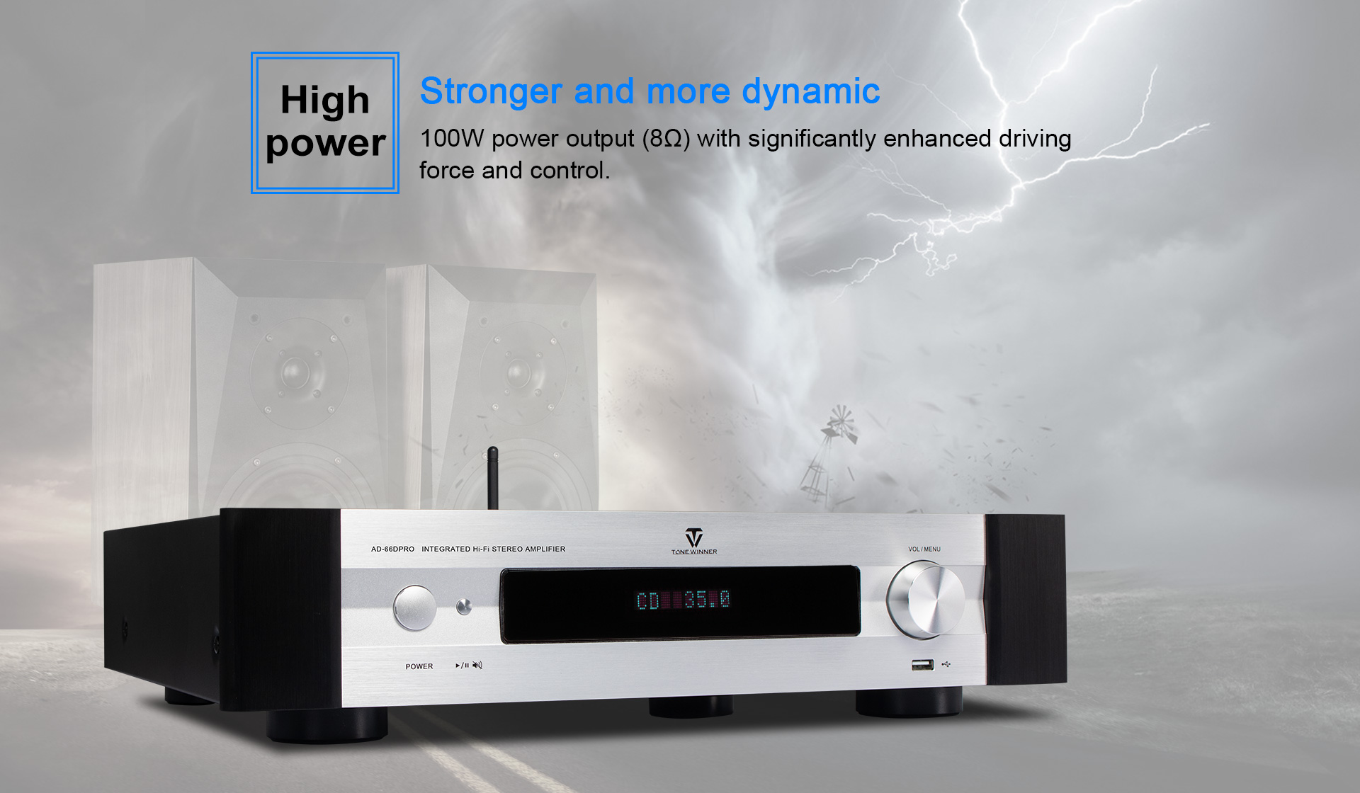 AD-66DPRO is an upgraded version of AD-66D. It has a new MM/MC phono interface, and is equipped with a new mobile APP. The AD-66DPRO keeps the most favor advantages and improve with the new features, it is a high recommend entrance level Hi-Fi amplifier.