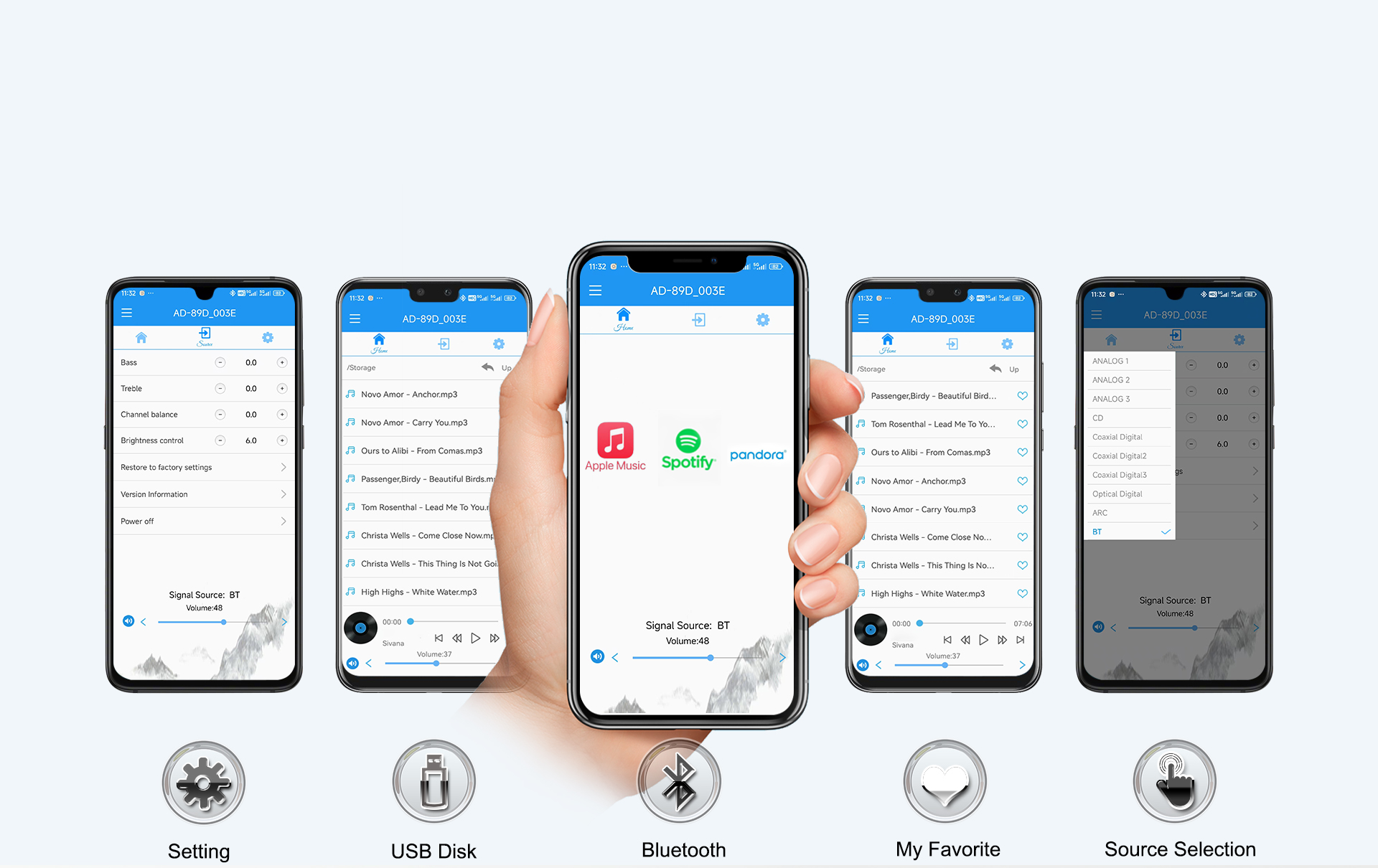 Exclusive mobile phone APP, multiple audio sources can be switched at will.