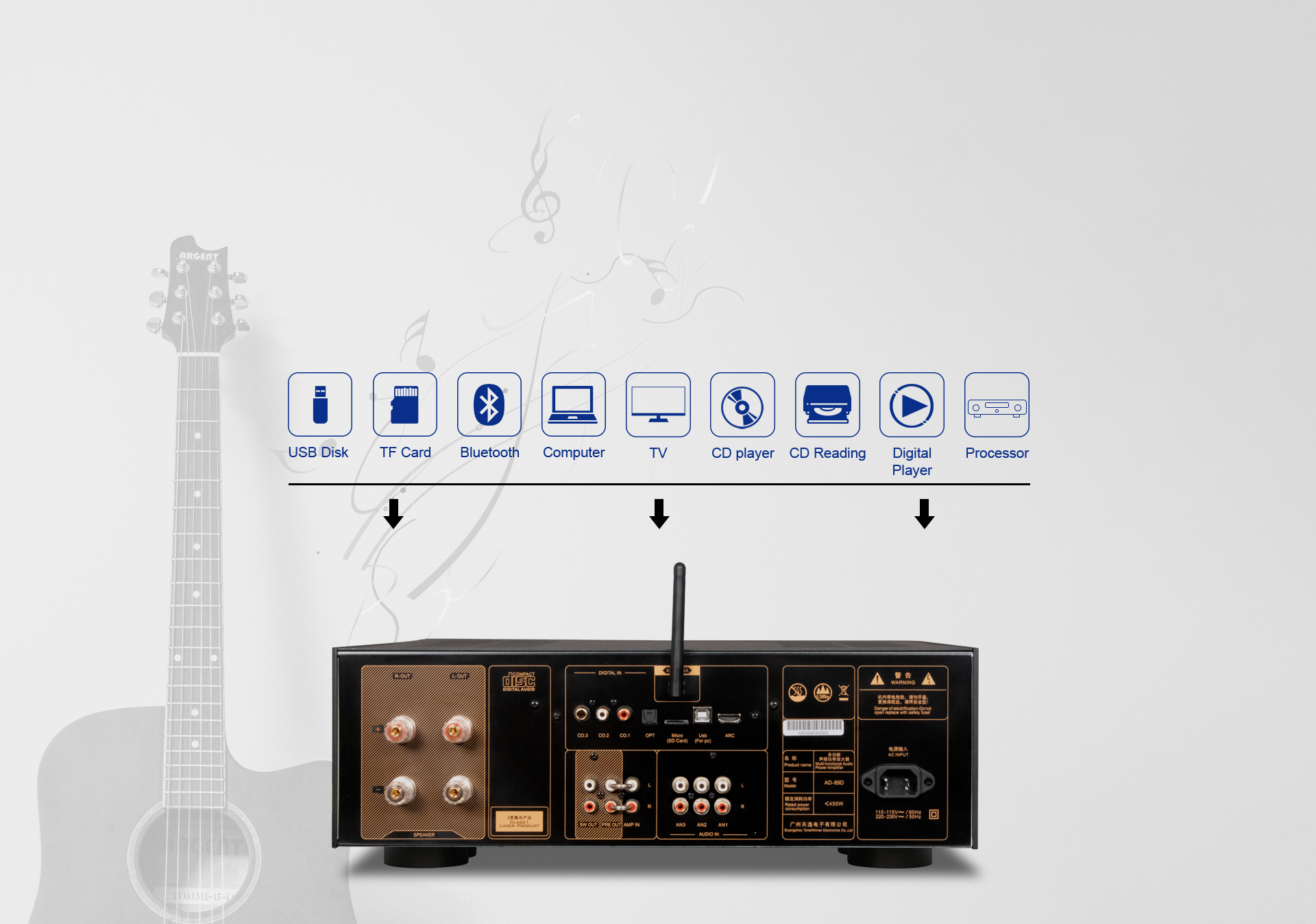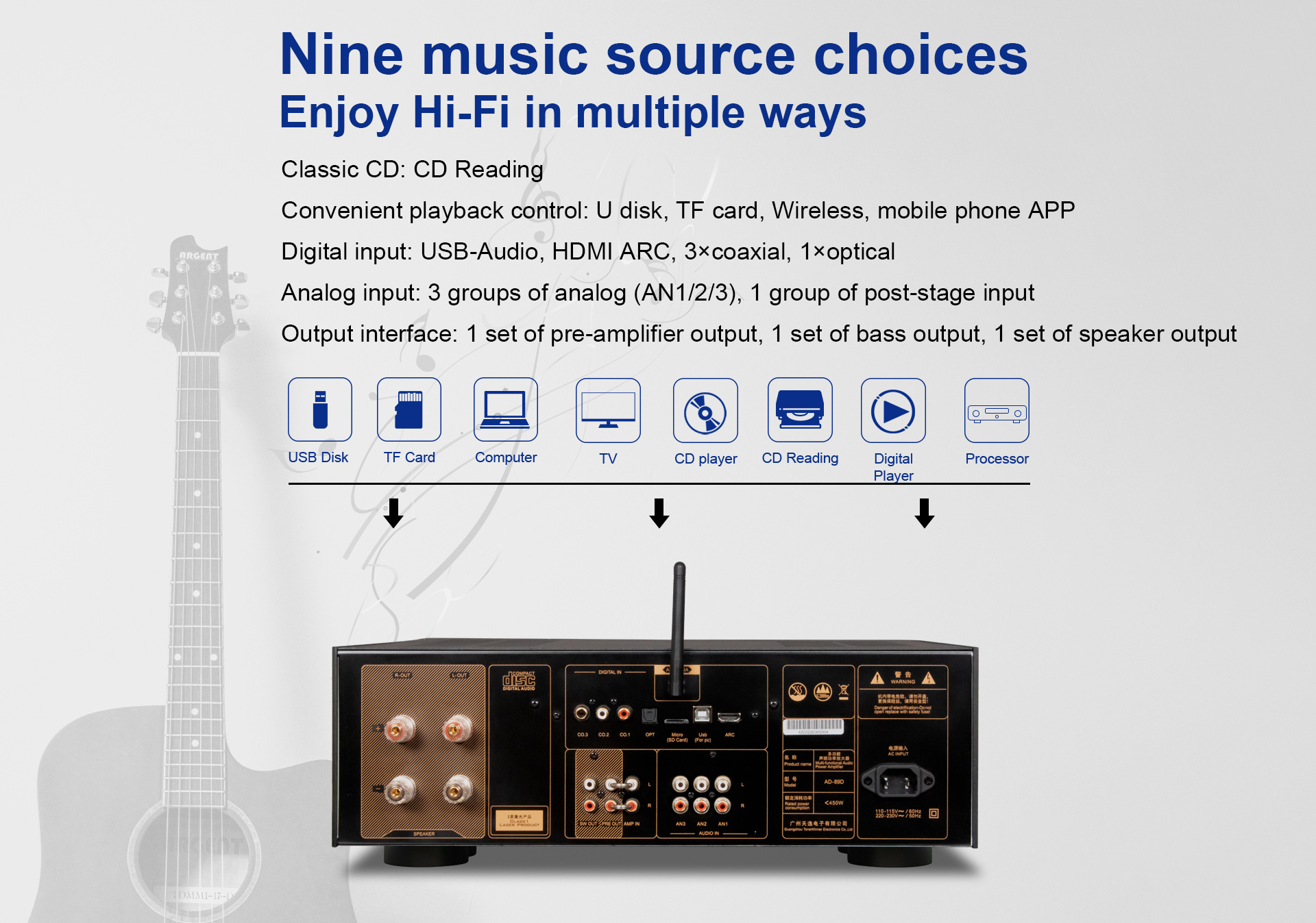 CD player, digital player, decoder, power amplifier, four in one! Function, performance, power, and sound quality are all in one! The operation is simple and convenient, and no complicated matching is required.