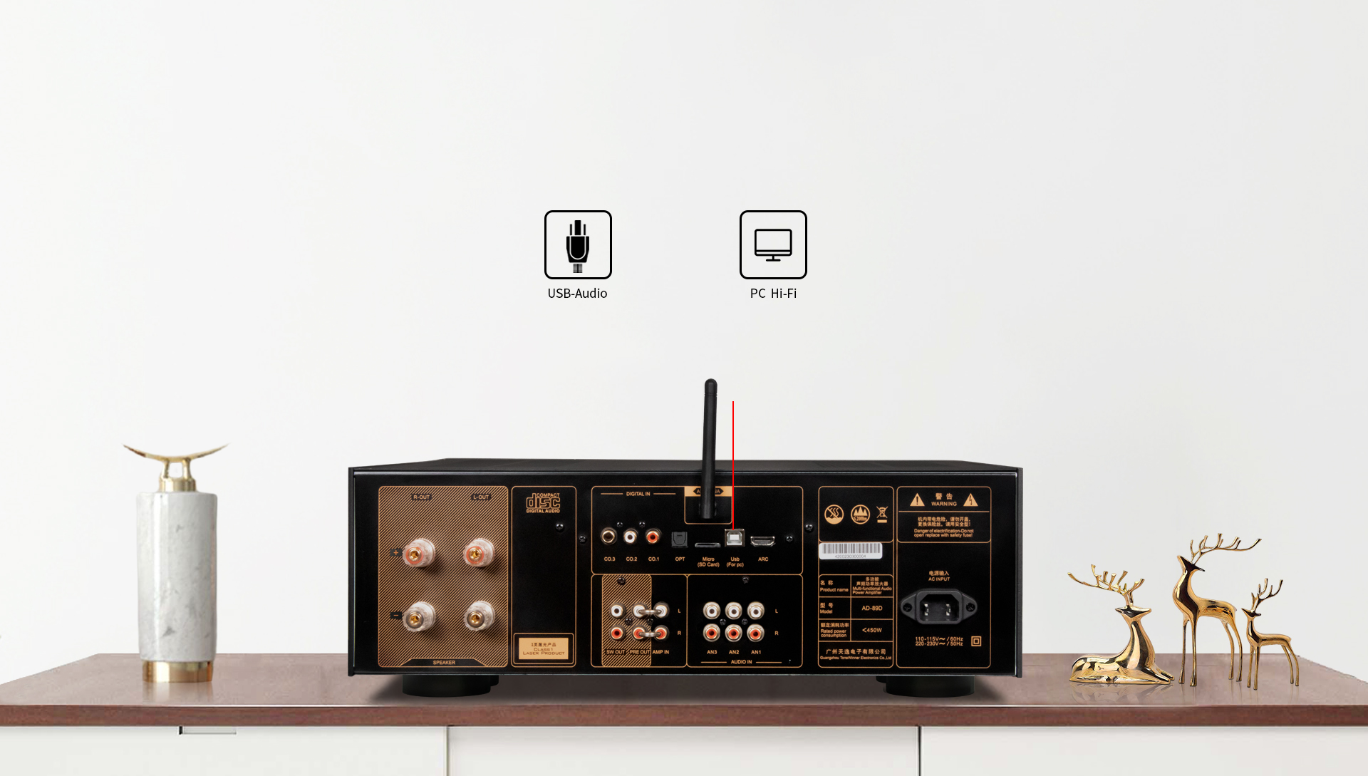 It supports USB-Audio port for PC with PCM48kHz/24Bit sample rate to achieve real PC Hi-Fi sound effect and meet the need of audiophiles.